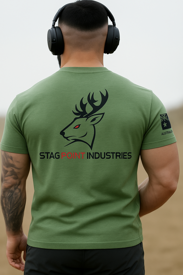 Stag Point Industries Men’s Soft style Tee – Heather Military Green (Modern Classic Fit)